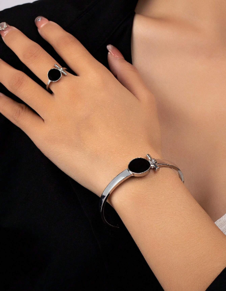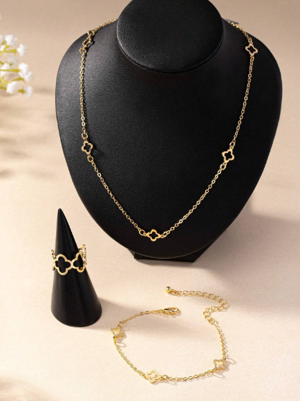 ❶❻💥Conjunto de joyería de metal elegante para damas, que incluye un collar, una pulsera y un anillo