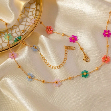 ❶❼🍂1 pieza Set de aretes y collar de flor pequeña y linda de acero inoxidable