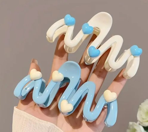 T❸❸💫 piezas de pinzas de pelo de onda azul con corazón de crema de verano