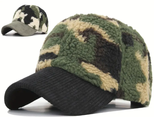 T❷❻🦋Sombrero de béisbol de camuflaje de invierno, gorro de plumas de cordero de moda para Hombre y Mujer