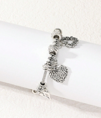 ❸❷🍁1 Pieza Brazalete Abierto Con Cuentas En Forma De Corazón Y Estilo Natural Y Fresco