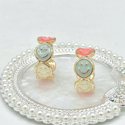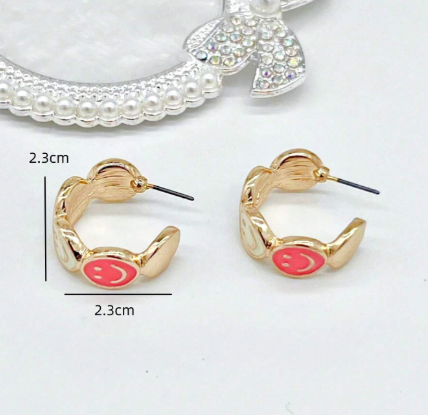❹❽🌻1 Par De Pendientes De Aro De Personalidad Con Cara Sonriente Dulce
